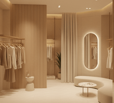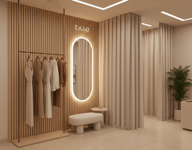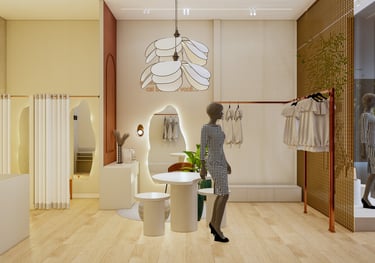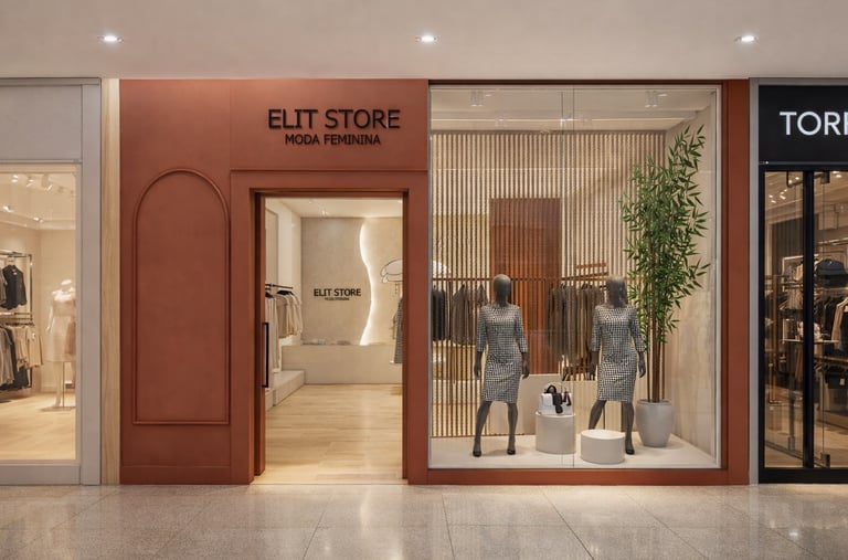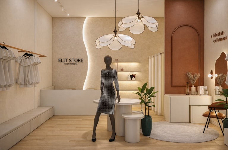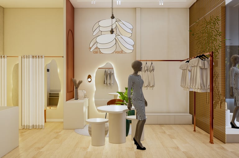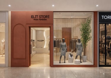 Projeto de arquitetura e interiores para loja de roupas femininas, localizada em Aguas Claras, Distrito Federal.