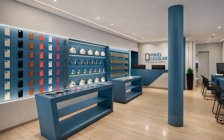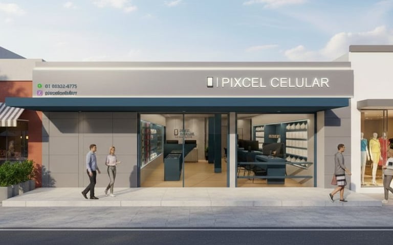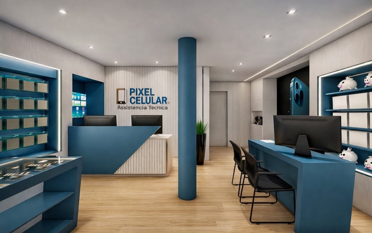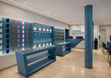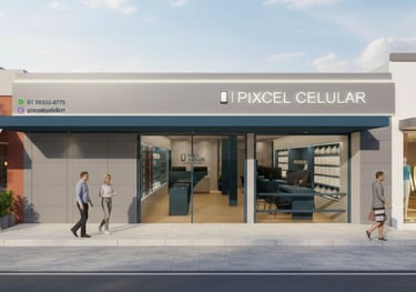 Projeto de arquitetura e interiores para loja de assistência técnica de celulares, localizada em Santa Maria, Brasília — DF.