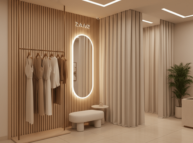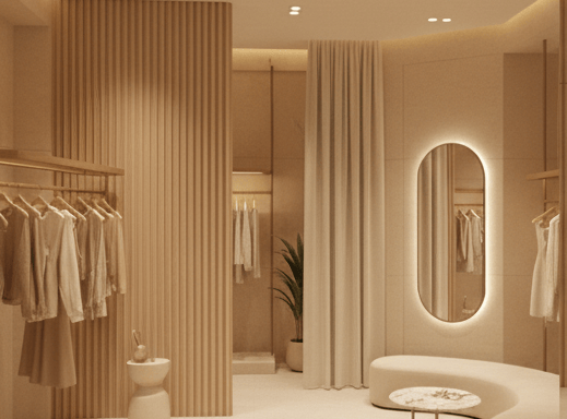 Projeto de arquitetura e interiores para loja de roupas femininas, localizada no Shopping Boulevard Brasília – DF.